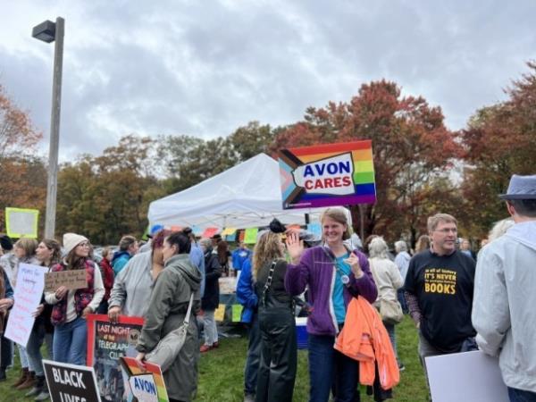 10月,哈特福德县自由妈妈分会在埃文举办了一场“父母权利研讨会”。该活动吸引了集会支持LGBTQ+社区和其他边缘化群体的抗议者。许多标语聚焦于书籍挑战,包括“读书,不要禁止”和“让自由阅读”等信息。