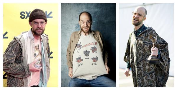 看看这篇文章顶部的照片,你会看到Scheinert穿着一件疯狂棉被毛衣,一件芥末夹克,另一件迷彩雨衣和一件带有西南风格的松软外套。