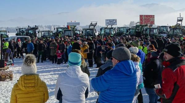 B472公路上的交通陷入停顿,通往彭茨堡市中心的路上一直都是交通堵塞。这种情况一直持续到所有的拖拉机都到达了位于乌塔尔和施威格斯里德之间的B472联邦公路旁的积雪覆盖的地区。经过半个多小时的延迟,集会开始了,Weilheim-Schongau BBV地区协会邀请了货运代理,美食和工艺品,周五(1月12日)到辛德尔斯多夫。