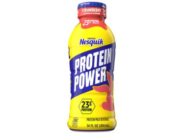 Nesquick最出名的可能是它的即饮粉状和糖浆状甜点饮料系列,所以当你发现它还提供一些蛋白质饮料时,你可能会感到惊讶。但是,尽管雀巢速食蛋白动力草莓蛋白牛奶饮料中添加了超过20克的健康蛋白质,但其含糖量似乎与其学校午餐盒中的同伴相差无几。含有高达39克的糖,这是一种应该避免的蛋白质奶昔。