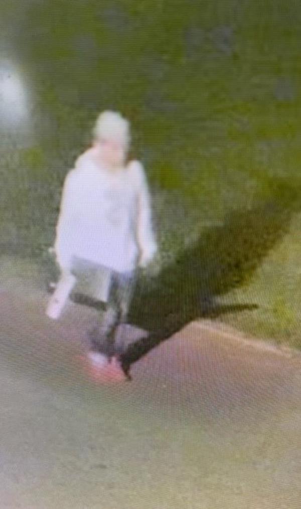 第一名嫌疑人被描述为一名男子或可能是一名身材苗条的青年,身穿白色安德玛连帽衫,头戴灰色棒球帽,穿着黑色褪色牛仔裤和亮红色跑鞋。