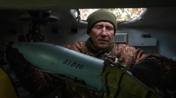 乔·拜登总统的政府声称,如果美国的援助进一步推迟,盟国可能会停止向基辅提供武器。本月早些时候,一名乌克兰士兵在顿涅茨克人民共和国装载炮弹。?Ignacio Marin/Anadolu via Getty Images