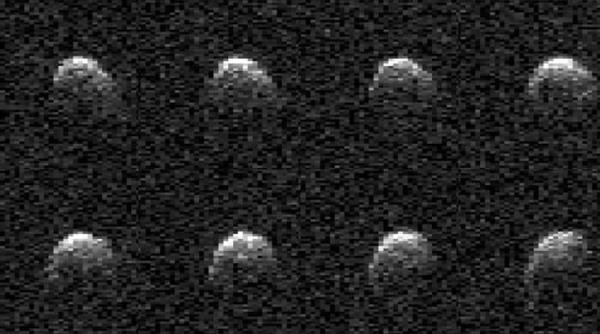 抓住这个难得的机会,美国宇航局在南加州的喷气推进实验室(JPL)利用深空网络Barstow设施的230英尺(70米)Goldstone太阳系雷达天线盘,捕捉到了小行星近距离接近时的详细图像。