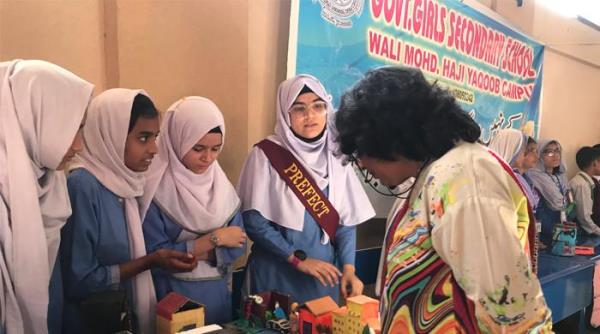周六,来自卡拉奇南区各所政府学校的学生聚集在一起,参加了STEAM Muqablo,利用科学、技术、工程、艺术和数学的力量,用想象力、创造力和实践技能应对现实世界的挑战。巴基斯坦的环境问题不断升级,需要找到可持续发展的想法来解决这些问题,学生们利用日常用品创造环保和生态意识的解决方案,以解决诸如温度上升和废物回收等问题。