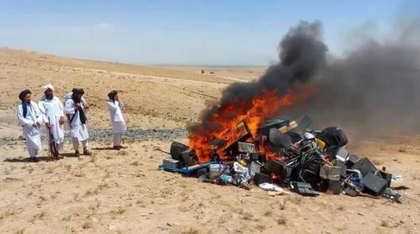 在西部的赫拉特省,价值数千美元的音乐器材上周六在一场篝火中被点燃。