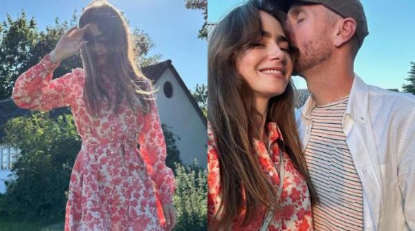 上周末,莉莉·柯林斯在庆祝丈夫查理·麦克道尔40岁生日时,穿着一件充满活力的红色碎花迷你裙,毫不费力地展示了自己的风格。
