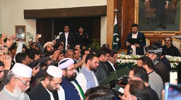 Gandapur周二在拉瓦尔品第的Adiala监狱与被监禁的该党创始人会面后,得到了他的点头同意,15名内阁成员宣誓就职。