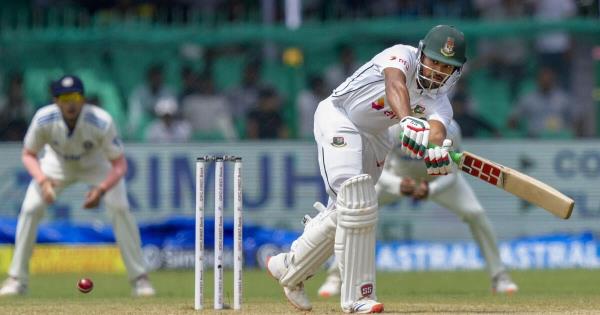坎普尔:步行者阿卡什·迪普在阴天的条件下两次命中,两场比赛都被淘汰,但孟加拉国队通过队长Najmul Hossain Shanto进行了反击,在周五第二次测试的开幕日午餐时达到了74分,由于外场潮湿而推迟了开始。
