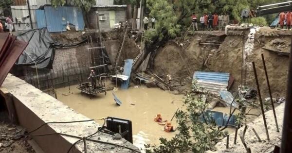 新德里:官员称,周六凌晨,瓦桑特维哈尔地区一建筑工地在大雨中倒塌,一名工人的尸体在墙的废墟下被发现。