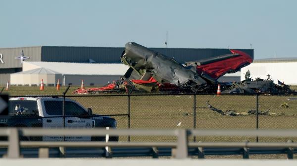 官员们正在调查周六达拉斯航空展上两架老式飞机在半空中坠毁的原因,两架飞机都俯冲而下,机上六人死亡。