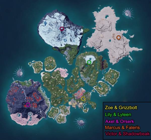 在Palworld中,你可以在塔中与他们强大的伙伴一起挑战5个boss。在教程的最后,你会遇到佐伊和她的电动伙伴灰熊。之后,训练师莉莉,亚历克斯,马库斯和维克多将会等着你们。