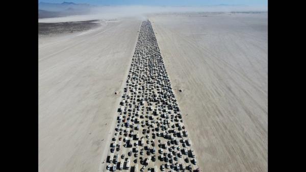 火人节的参加者试图离开今年的活动,却遭遇了数小时的拥堵——一些汽车在路上抛锚了——因为热浪达到了100多度。