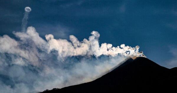 自4月3日以来,意大利南部岛屿西西里岛的埃特纳火山一直在向天空吹着近乎完美的圆圈。