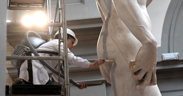 这个不寻常的清洁过程每两个月进行一次,展示了如何使用一个简单的刷子和真空吸尘器来清除年老的大卫可能积累的任何灰尘。