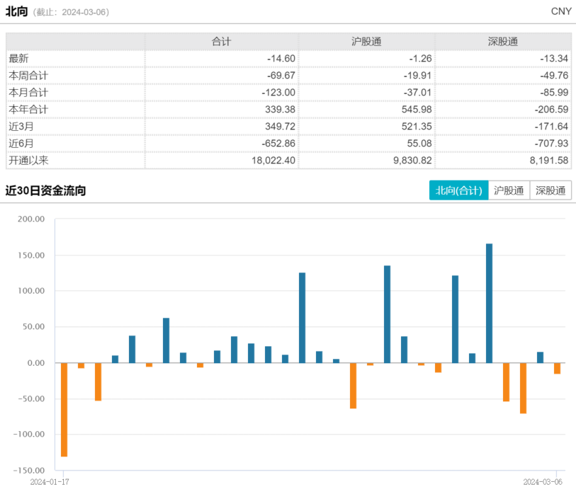 3月6日A股低开后震荡整理,三大指数午前快速拉升,新能源赛道全线反弹。午后三大指数逐步回落,最终集体收跌。截至收盘,上证指数收跌0.26%结束四连阳,深证成指跌0.22%,创业板指跌0.06%。市场成交额9395.8亿元,未达万亿规模,北向资金实际净卖出14.6亿元。盘面上,机器人、风电、储能等概念较为活跃,煤炭、芯片、医药行业跌幅居前。
