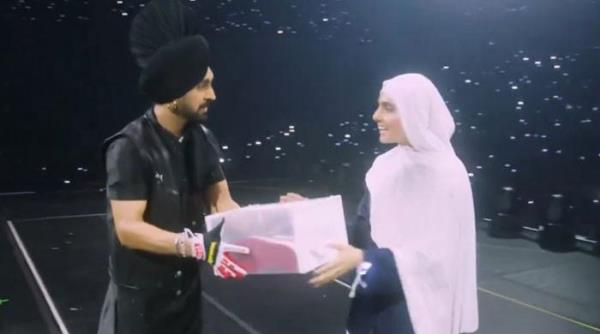 最近在曼彻斯特的一场演出中,这位40岁的旁遮普音乐明星把他的一位粉丝叫到舞台上,送给她一份礼物——一盒签名的运动鞋——以一种温暖人心的方式。
