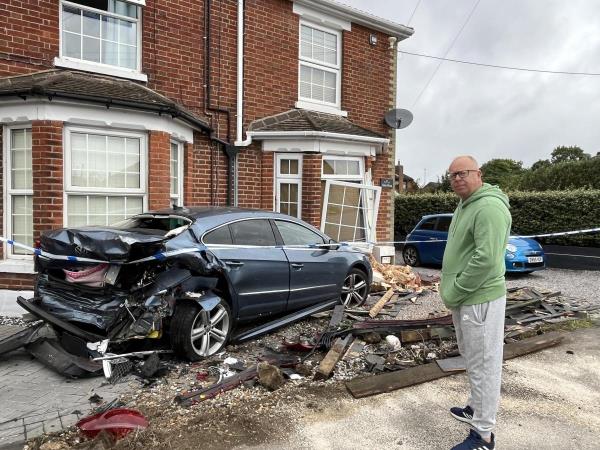 一名居民的汽车在撞车后被冲入邻居的房子里,导致汽车报废,房屋严重受损。