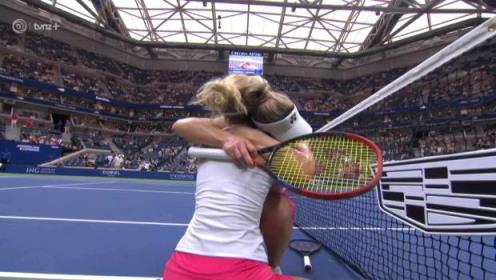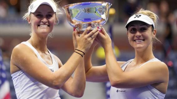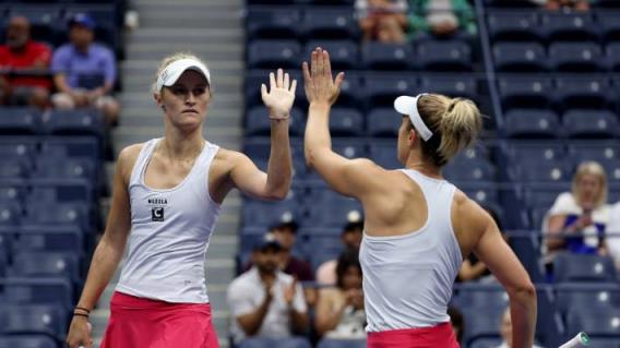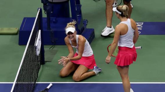 艾琳·劳特利夫和加布里埃拉·达布罗斯基在美国公开赛决赛中庆祝胜利。