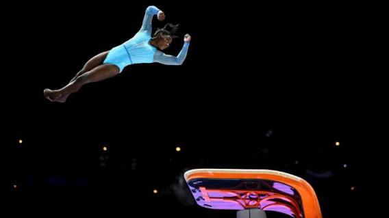 西蒙娜·拜尔斯(Simone Biles)从跳马一跃而下,腾空而起,达到了这里所有其他女子都无法企及的高度。她抓住直腿,浅蓝色的紧身衣变得模糊起来。当她旋转两次时,她的技术像往常一样出色,她的脚向后跳了一步,找到了垫子。人群立刻欢呼起来,他们明白了这一刻的重要性。