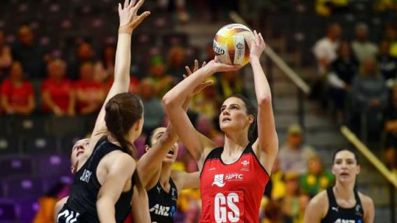 威尔士的射门——乔治亚·罗尝试向银蕨队发起进攻。