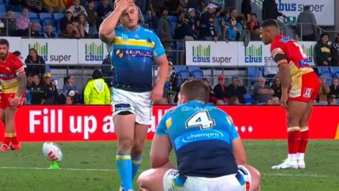 在昆士兰州与泰坦队的德比中,新西兰边锋杰米·艾萨科保持冷静,为海豚队打进制胜一球。