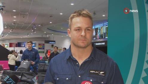 这位全黑队队长在奥克兰机场面对媒体。