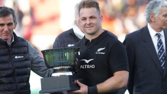在门多萨,全黑队队长山姆·凯恩带着他的球队战胜阿根廷队的战利品。