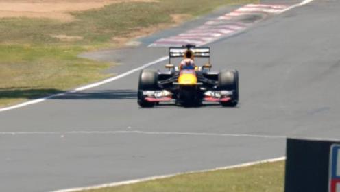 利亚姆·劳森驾驶着红牛一级方程式赛车绕着全景山旋转。