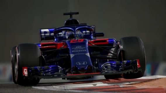 2018年阿布扎比一级方程式大奖赛,新西兰车手Brendon Hartley驾驶着(28)Scuderia Toro Rosso STR13本田赛车在赛道上进行练习。