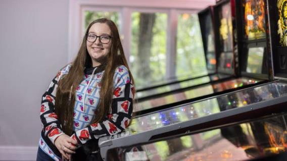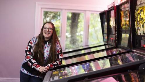 新西兰头号弹球玩家丹妮尔·派克的家里有一整块地方放游戏机。