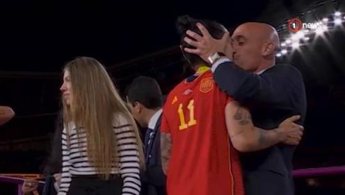 在悉尼举行的国际足联女足世界杯决赛上,西班牙足球主席亲吻了珍妮·赫尔莫索的嘴唇
