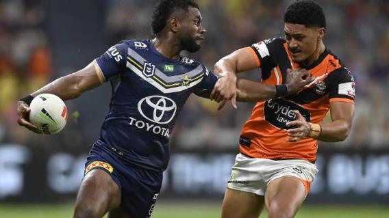 Murray Taulagi 3, Scott Drinkwater 2, Semi Valemi 2, Valentine Holmes 2, Tom Dearden, Luciana Leilua, Jeremiah Nanai, Jordan McLean tries;(霍姆斯11球西虎0。HT: 42-0。