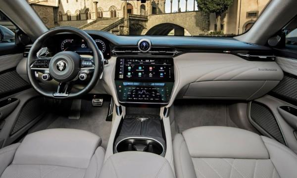 与老旧的前代车相比,这款车的机舱有了很大的升级,配备了数字屏幕和触摸控制,取代了许多物理按钮。GranTurismo配备了一个数字仪表盘,一个大的中央触摸屏,而仪表盘顶部的经典模拟手表已被一个可配置的小数字屏幕所取代。空调和座椅控制通过位于主12.3英寸中央触摸屏下方的辅助8.8英寸触摸屏操作。