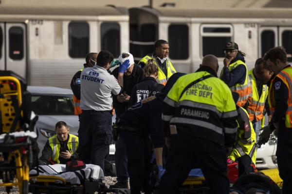 消防官员表示,今天早上,芝加哥一列通勤列车与铁路设备相撞,造成近40人受伤,其中一些人伤势严重。