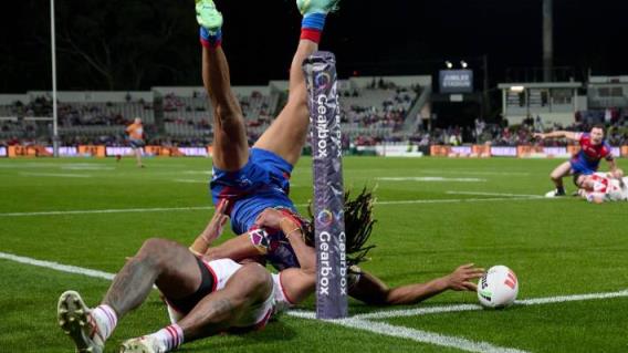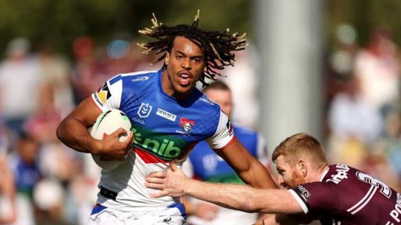 多米尼克·杨在纽卡骑士队对阵曼利海鹰队的第五轮NRL比赛中为纽卡骑士队效力。