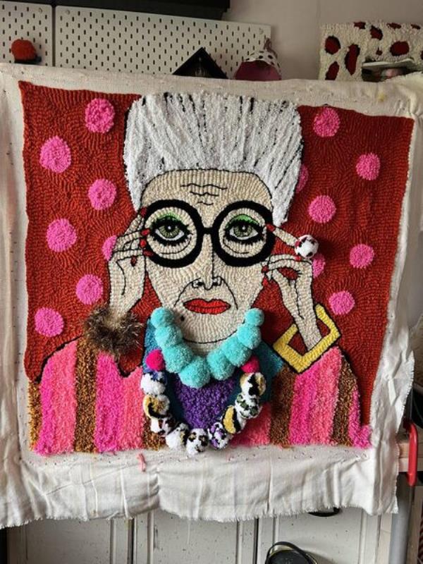 “我喜欢创新,因为这对我来说就像一种治疗。这就是我做打孔针工作坊的原因。如果我能在你专注于做某件事的时候给别人那种温暖的感觉,我会很开心。”打孔针艺术是一种刺绣形式,它使用一个像针一样的大工具把纱线打到织物上,这是乔安妮喜欢的一种艺术形式。