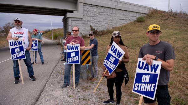 工会希望结束与三家汽车制造商的谈判,这样“福特和斯特兰提斯的工人就不会投票否决(他们的)临时协议,因为他们想看看通用汽车的工人能得到什么。”
