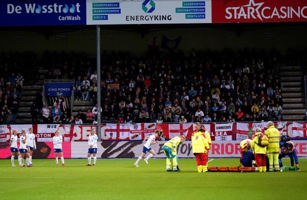 这名后卫的英格兰队友很担心,他们站在她周围,跟着她离开了球场。