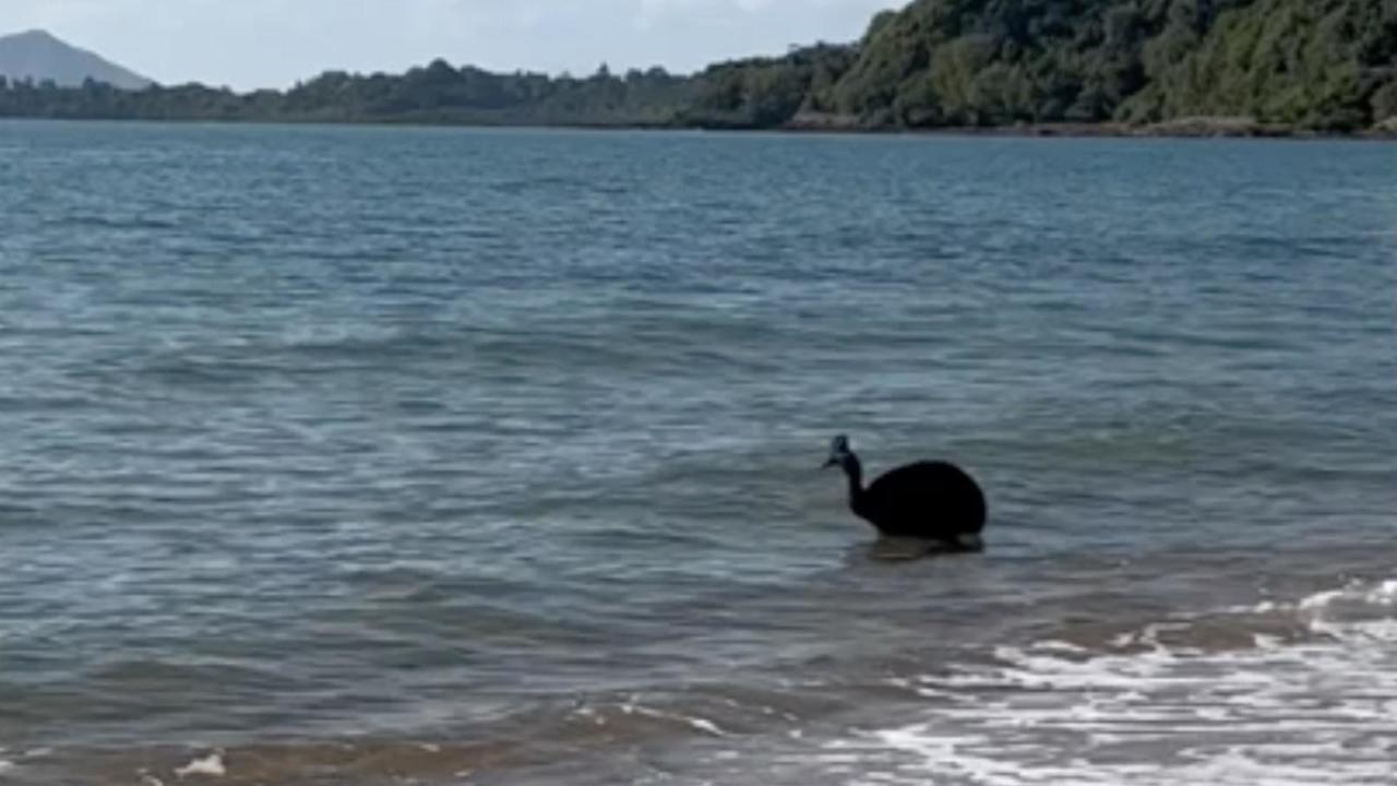 昆士兰州政府在一份新闻稿中说,在澳大利亚东北部的宾吉尔湾,一只被认为是“世界上最危险的鸟”的巨大生物从水中冒出并甩了出来,震惊了海滩上的游客。