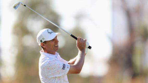 新西兰的史蒂文·阿尔克在第三轮查尔斯·施瓦布杯冠军在凤凰乡村俱乐部走了15号果岭。