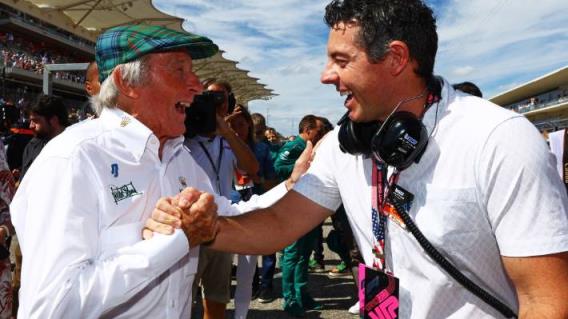 杰基·斯图尔特爵士与罗里·麦克罗伊在发车区在10月的美国赛道的F1大奖赛。