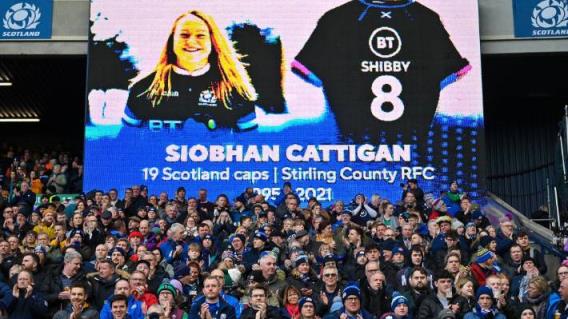 在六国比赛之前,人们为已故的苏格兰女子橄榄球运动员西沃恩·卡蒂根(Siobhan Cattigan)鼓掌一分钟。
