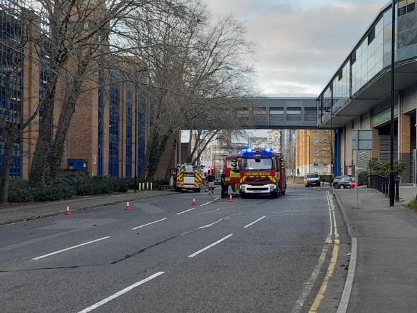 紧急服务部门处理了市中心停车场发生的一起事故。