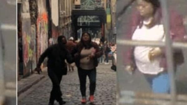 在一名女子的陪同下,嫌疑人步行穿过弗林德斯巷和罗素街离开了该地区。