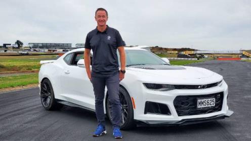 紧紧抓住屋顶作为霍尔顿赛车传奇格雷格·墨菲在强大的卡马罗ZL1打滑。