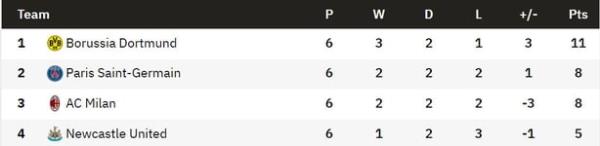 埃迪·豪说纽卡斯尔在主场1 - 2输给AC米兰后“彻底崩溃了”,他们在欧冠小组赛中排名垫底。