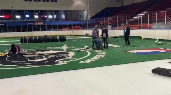 如果球队是背靠背的比赛,爱荷华州恶魔鹰队将在每场比赛或一系列比赛之前和之后设置和拆除草皮。
