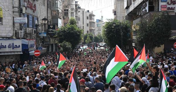 自发集会在警力严密的巴勒斯坦权力机构首都是很少见的。自发集会是为了回应前一天在加沙al-Ahli浸信会医院(al-Ahli Baptist Hospital)停车场发生的爆炸,爆炸造成数百人死亡。在拉马拉、图尔卡勒姆、纳布卢斯和杰宁,巴勒斯坦安全部队用催泪弹驱散游行队伍,有时还动用实弹。与以色列军队的冲突也在西岸的几个城镇爆发。